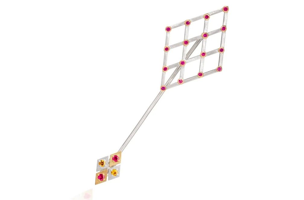 Булавка Harlequin от Romany Starrs из желтого золота, серебра, рубинов и сапфиров: