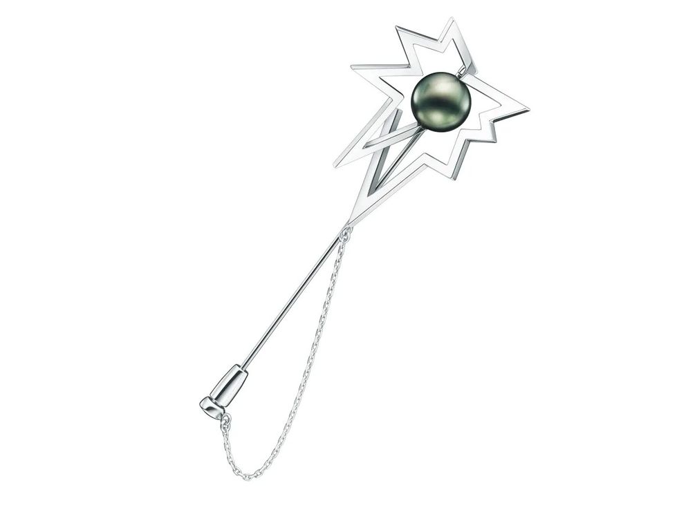 Булавка на лацкан от Tasaki x Fiona Krüger Chaos из белого золота и черного жемчуга южного моря: