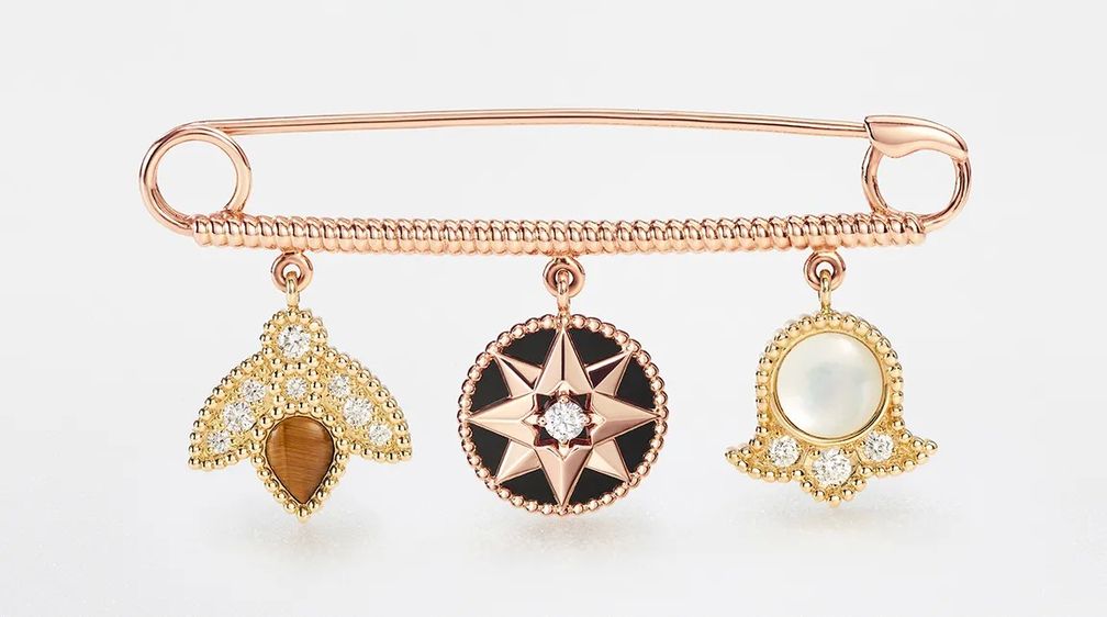Брошь Charms от Dior из желтого и розового золота, бриллиантов и поделочных камней: