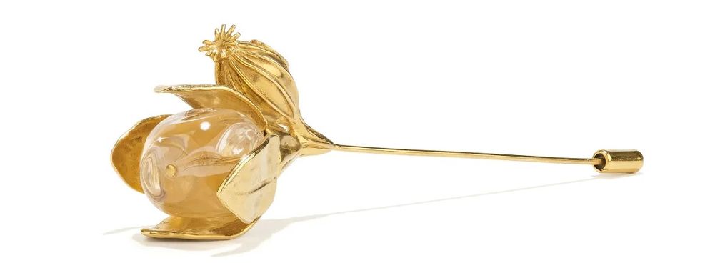 Брошь Fleur de Pavot Bud от Goossens Paris из золотой пластины и горного хрусталя: