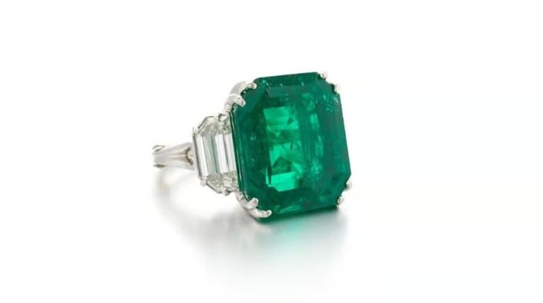 Примечательное кольцо с колумбийским изумрудом ступенчатой огранки и бриллиантами было продано за 165 100 евро (174 853 доллара США), что более чем в три раза превысило его оценочную стоимость в 50 000 евро (52 954 доллара США).