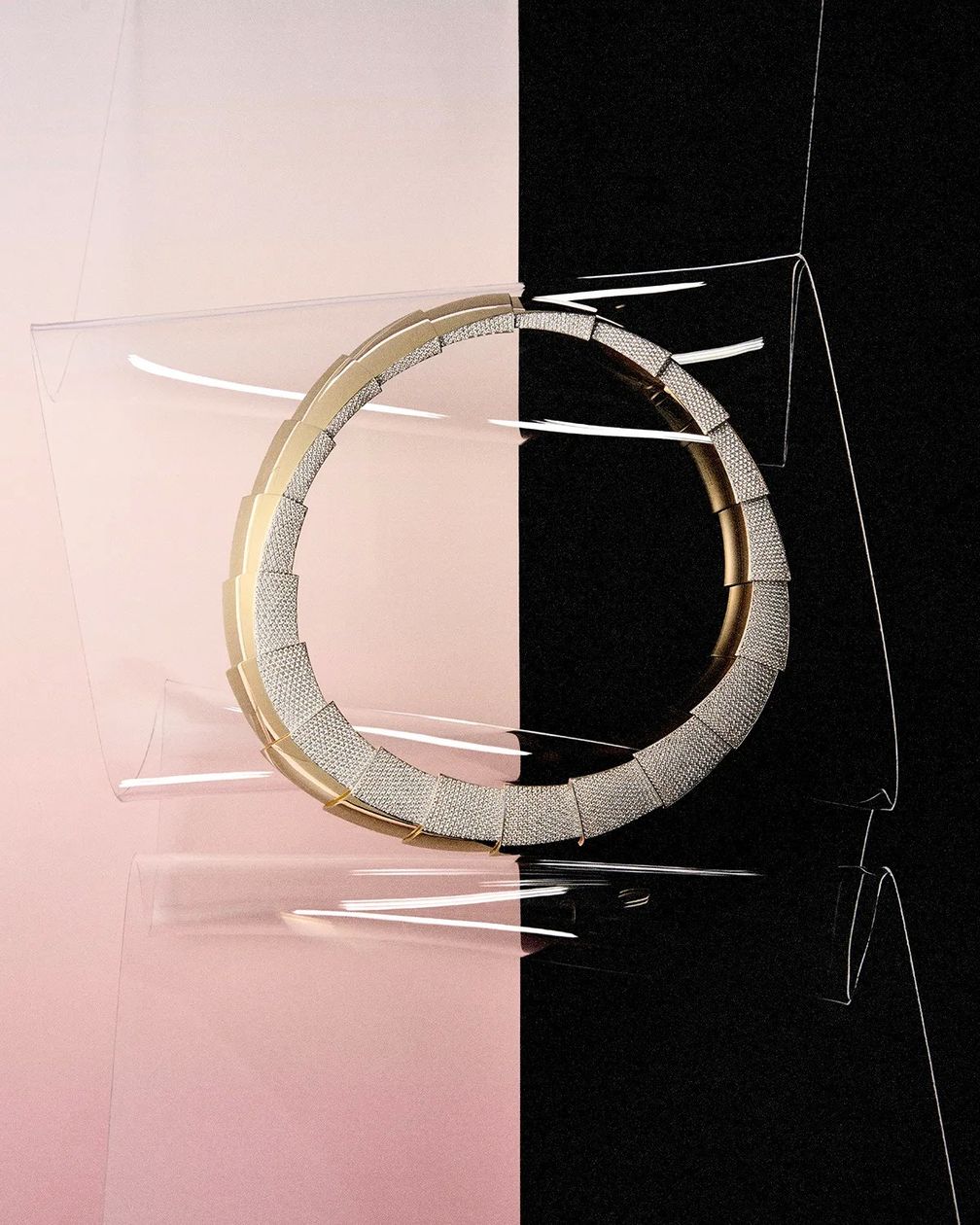 Некоторые украшения по-настоящему футуристичны. Фирменный образ Vhernier сочетает минимализм 18-каратного розового золота с роскошью в виде извивающегося акцента из бриллиантов в паве в колье Ardis Forma di Luce, в то время как асимметричные австралийские опалы от Piaget создают узор, напоминающий булыжную мостовую, из 18-каратного белого золота и бриллиантов, с мадагаскарским сапфиром, расположенным в центре.