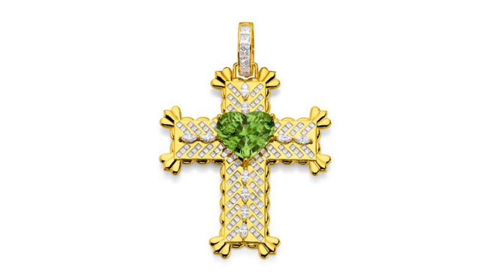 Подвеска Heart Cross от Buddha Mama из 18-каратного желтого золота с перидотом и бриллиантами:
