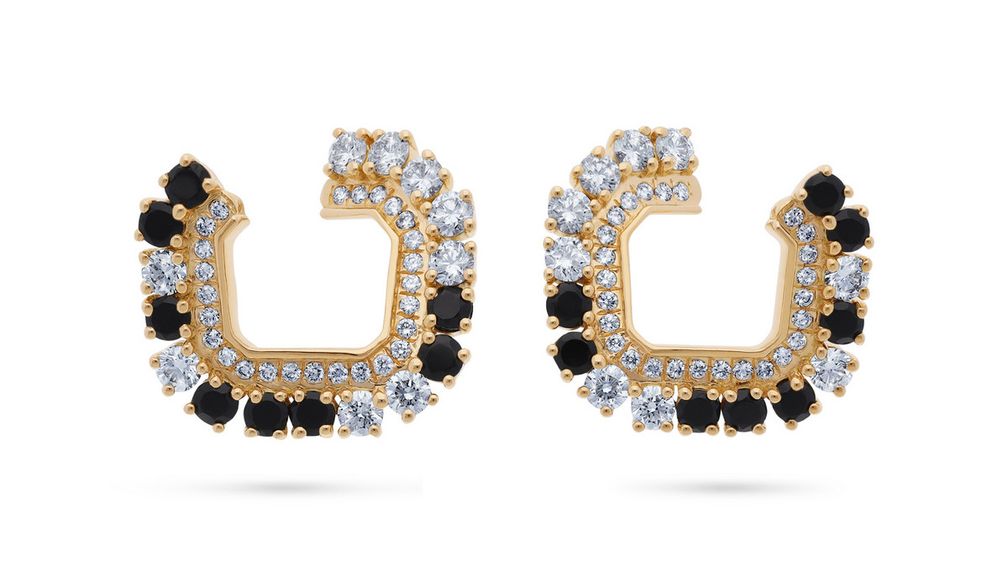 Серьги-кольца Icon Prism от Karina Choudhrie из 18-каратного желтого золота с черной шпинелью и бриллиантами: