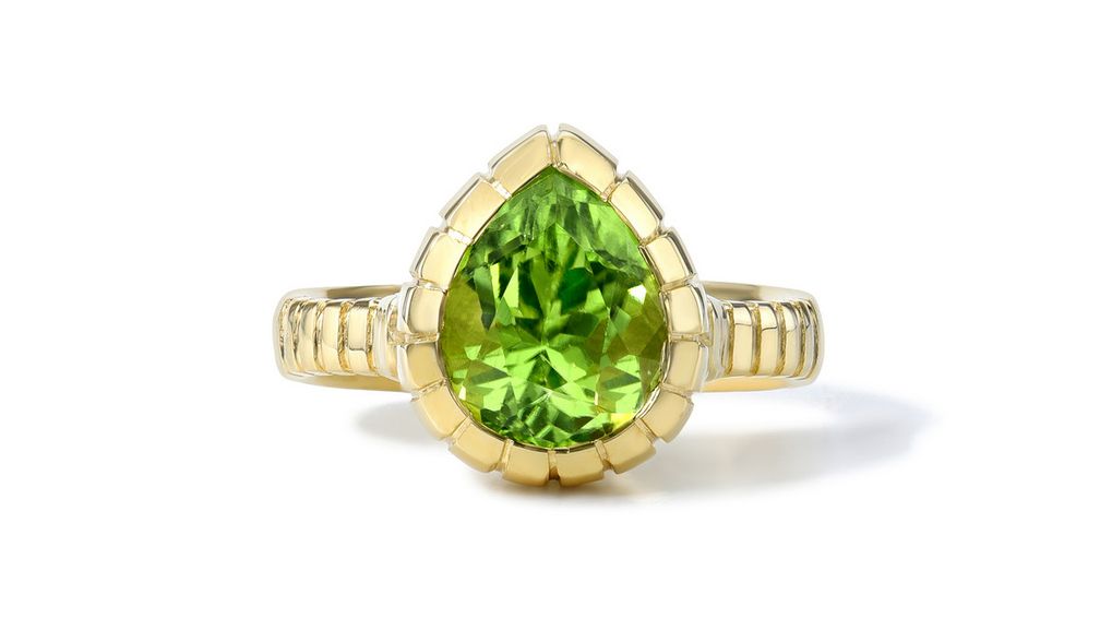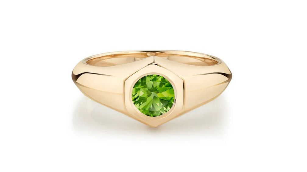 Кольцо Heirloom Bezel от Retrouvai из 14-каратного желтого золота с перидотом: