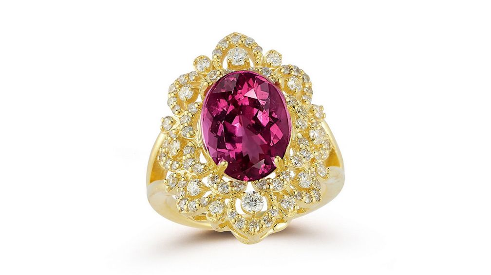 Кольцо Lattice от Tanya Farah из 18-каратного желтого золота с розовой шпинелью и бриллиантами: