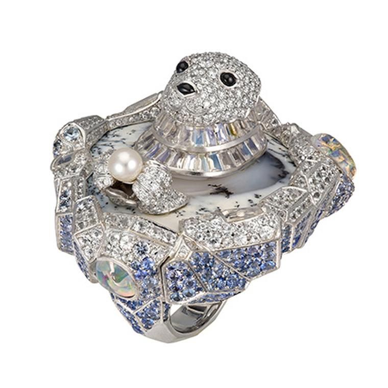 С этой отправной точки началось развитие нескольких концепций. Арктические животные, чья шерсть становится белой для маскировки, представлены в коллекции наряду с новыми мотивами в виде снежинок. Дендритные опалы формируют пейзажи, в то время как бриллианты покрывают их поверхность льдом и изморозью.