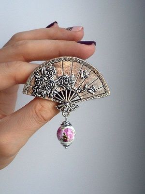 Ювелирные брошки чаще выполнены из серебра. Это могут быть изделия в винтажном стиле, которые выглядят как настоящие старинные веера, но в миниатюре. С таким украшением вы будете выглядеть так, словно собираетесь на бал.