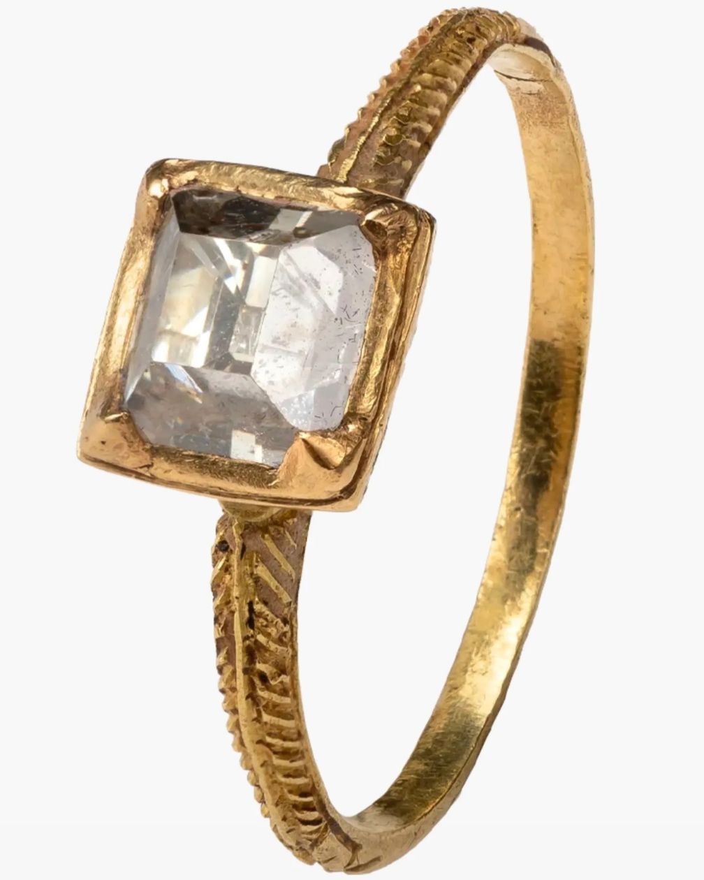 Кольцо с бриллиантом столовой огранки с гравировкой на золотом ободке от Les Enluminures, около 1600 года (любезно предоставлено Les Enluminures):