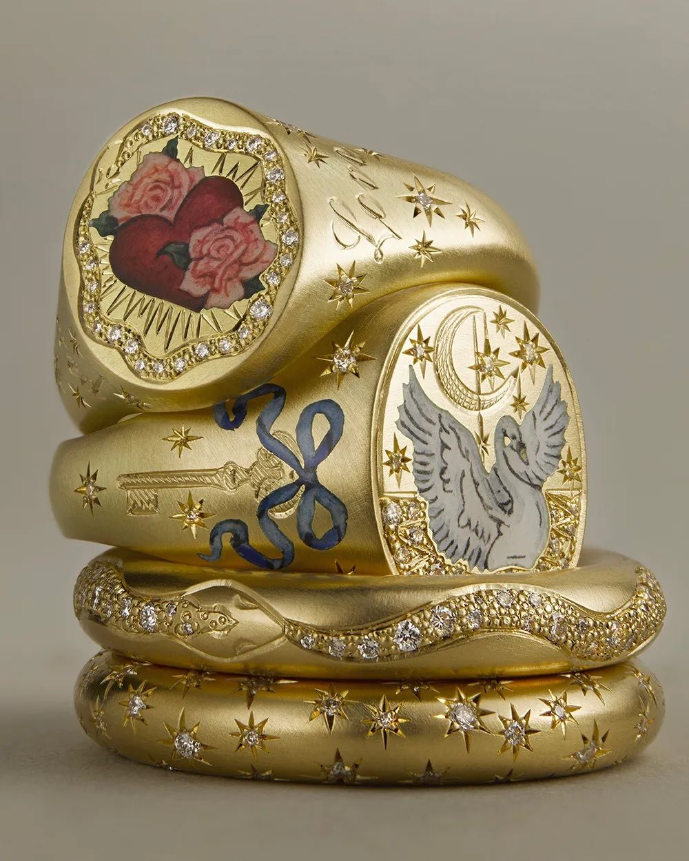 Кольца из золота, эмали и бриллиантов от Cece Jewellery (любезно предоставлено Cece Jewellery):