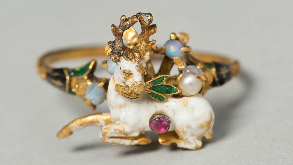 Кольцо с оленем, Германия, около 1550-1600 гг. (Heritage Art/Heritage Images via Getty Images):