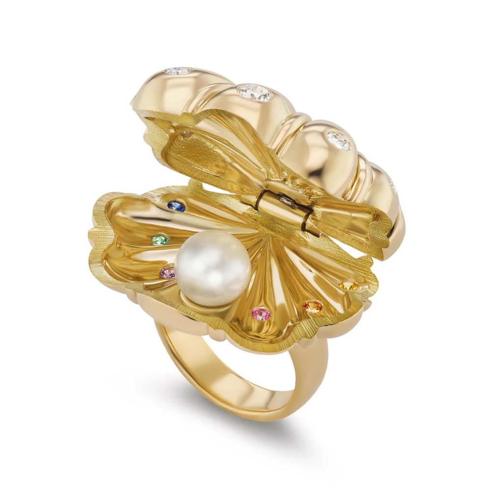 Ее кольца и кулоны из ракушек, в том числе кольцо Large Clam Shell, которое открывается, обнажая жемчужину, выглядят игриво, но в то же время изысканно.