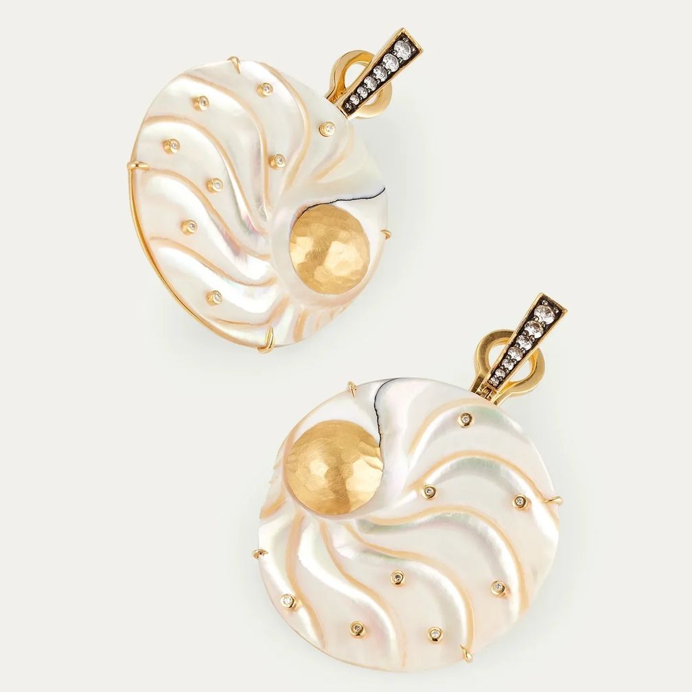 Серьги Nautilus Shell из 18-каратного желтого золота с бриллиантами от Silvia Furmanovich: