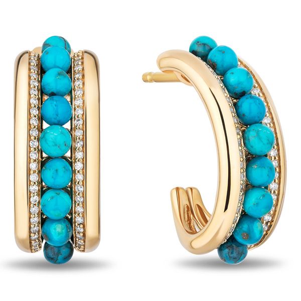 Серьги-обручи Runway из желтого золота с бирюзой и бриллиантами от Mason and Books: