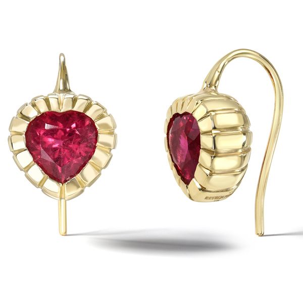 Серьги Heirloom из 18-каратного желтого золота с рубинами в форме сердца весом 2,14 карата от Retrouvaí:
