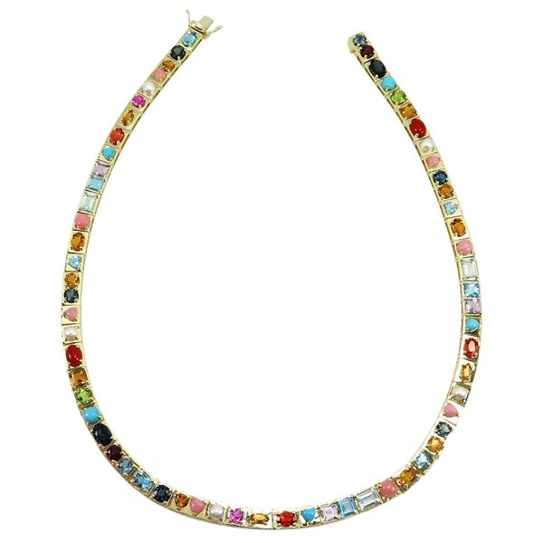 Ожерелье из коллекции Leggo из 14-каратного желтого золота с разноцветными драгоценными камнями от Type Jewelry: