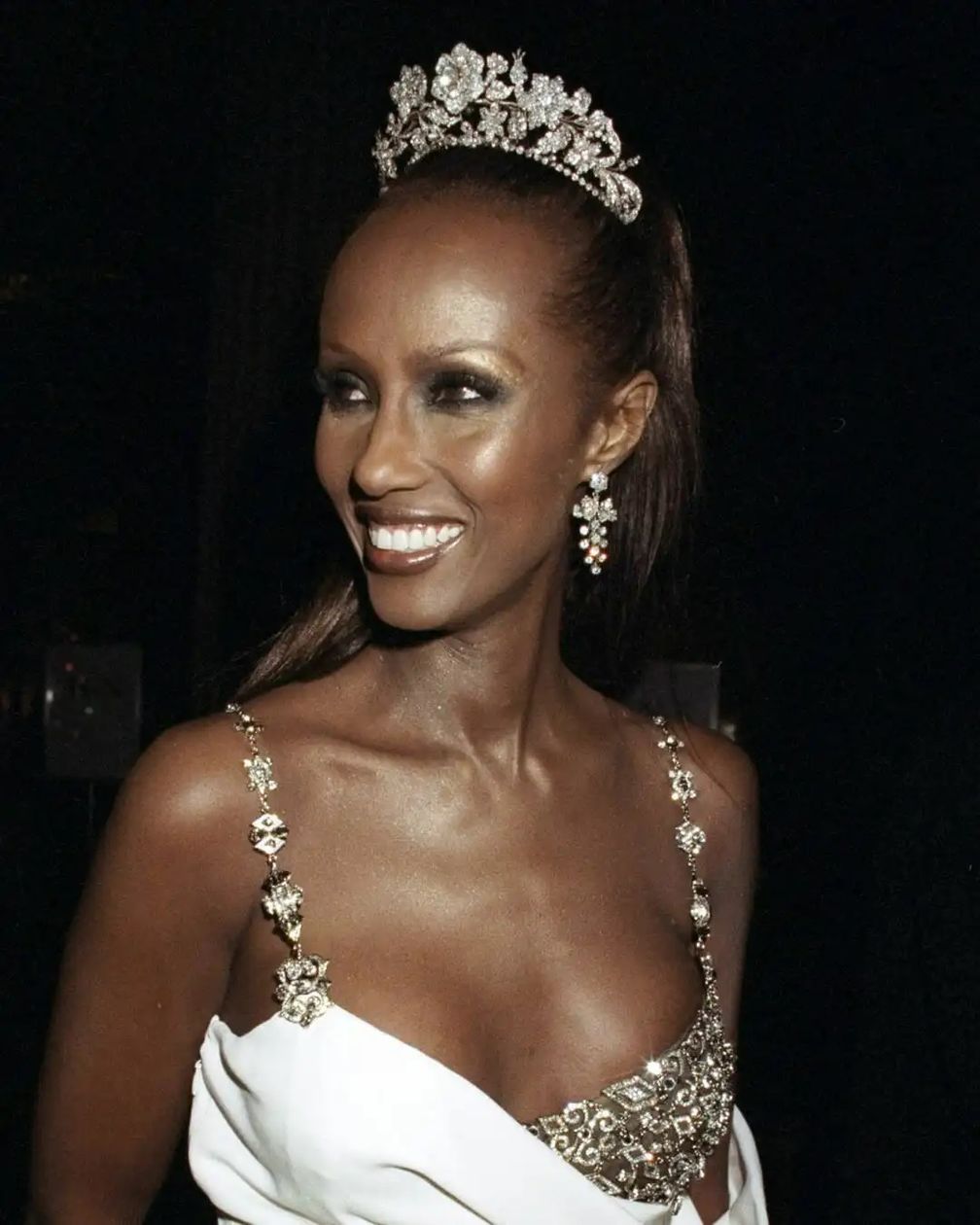 Вторая половина 1997 года ознаменовалась потерей двух самых влиятельных фигур в мире моды – Джанни Версаче в июле и принцессы Дианы в августе. Когда в декабре супермодель Иман появилась на гала-концерте Met Gala в бело-бронзовом платье от Versace в сочетании с бриллиантовой цветочной тиарой, этот момент приобрел дополнительный резонанс.