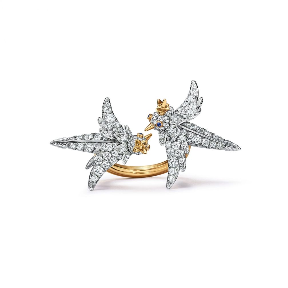 Во всей коллекции, от замысловатой текстуры до различных техник оправы бриллиантов, прослеживается мастерство Tiffany & Co. Более абстрактные интерпретации этой коллекции – Bird on a Rock by Tiffany Wings – демонстрируют бриллианты в скрытой оправе, словно подвешенные в воздухе.