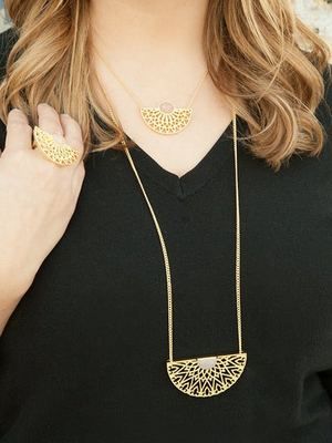 Золотое шейное украшение элегантно дополняет образ. Bib-колье хорошо сочетается с одеждой в бельевом стиле, визуально сужает плечи, вытягивает силуэт. Сотуар носят с водолазкой, платьем-рубашкой, сарафаном, жакетом простого силуэта. Длинный аксессуар экстравагантен, сексуален, особенно хорош с коктейльным платьем.